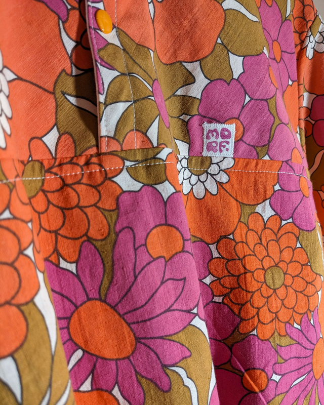 Cette blouse taille M est fabriqué à la main en France, à Mâcon, avec des tissus (linges de lit) issus de récupération !