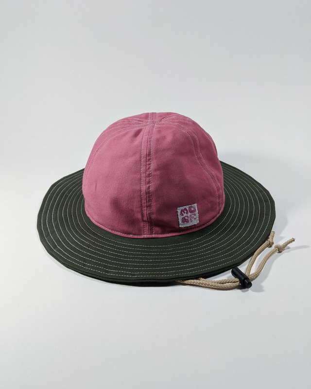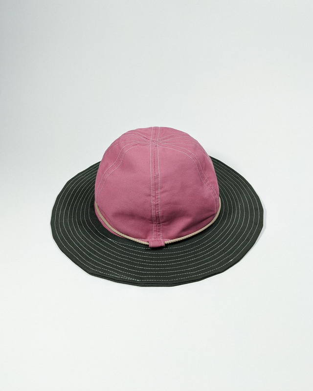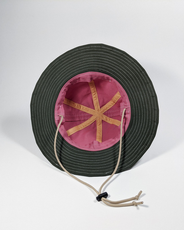 La partie supérieur est englobante mais pour éviter qu'il ne s'envole avec le vent, un cordon vient faire le tour de la tête pour se serrer en bas du menton. La visière est plate et doublée pour qu'elle garde une bonne rigidité !