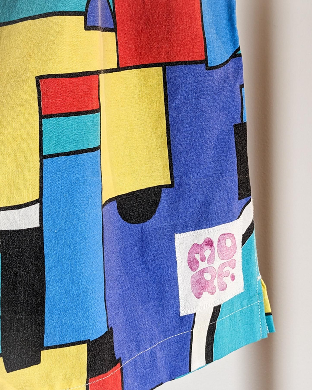 Ce short (taille M) est fabriqué à la main en France, à Mâcon, avec des tissus (linges de lit) issus de récupération !